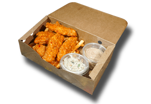 Chicken tenders tossed in Spicy Peri- Peri sauce served with Fries, coleslaw and T.L.C dipping sauce.